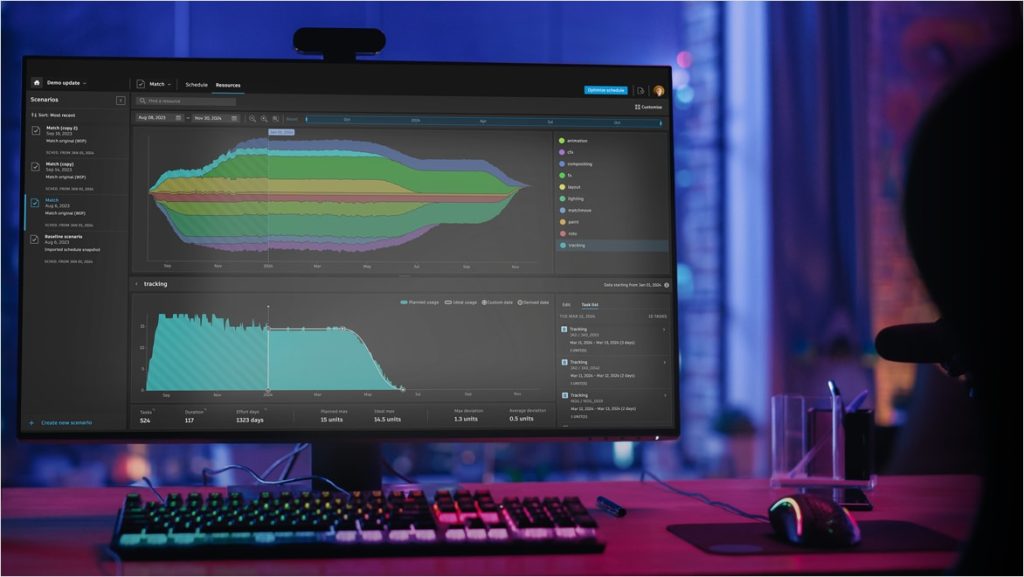 Use AI-powered scheduling features to grasp the downstream effect of changes in creative direction or resource allocation on your overall project timeline and other projects in your studio pipeline.